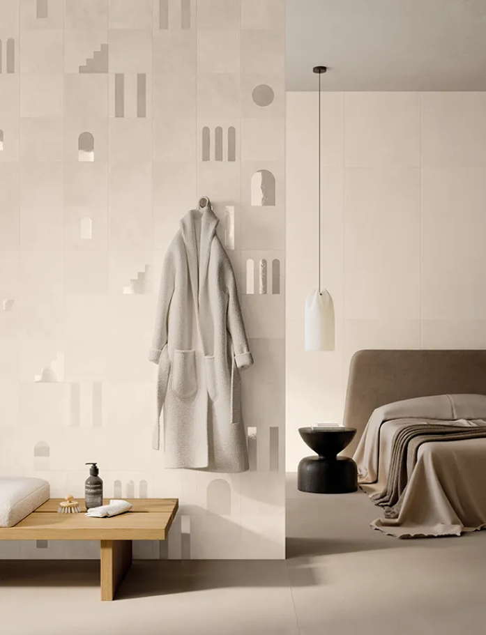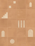 Crafted meticulously in Italy, the range pairs 200x200 squares with elongated subways in a mix of matte and gloss finishes. Each colour - from rich terracottas to softer mineral tones - is designed to layer beautifully, while the decorative tiles introduce a curated randomness of arches, stripes and geometric forms. With a matte base and gloss detailing, the decors catch the light in subtle, unexpected ways, adding depth without overpowering. The decor boxes are mixed at random, so no two installations are ever quite the same, giving each space its own rhythm and personality.