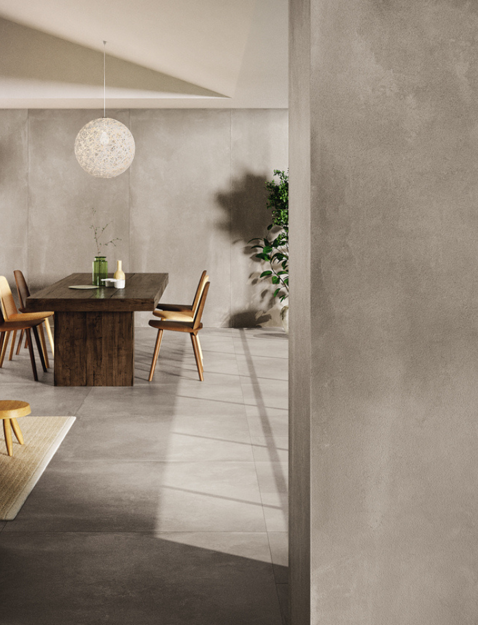 Silence in surface form. Azuma distils Japanese spatial philosophy into refined concrete-look porcelain, where restraint becomes beauty, and emptiness invites possibility.