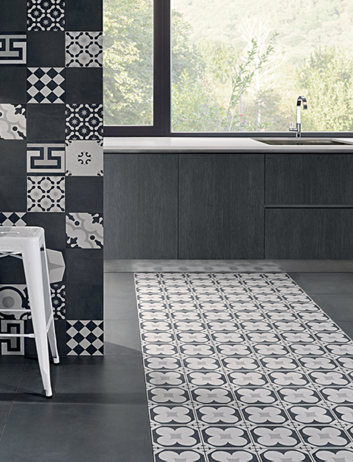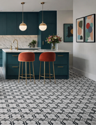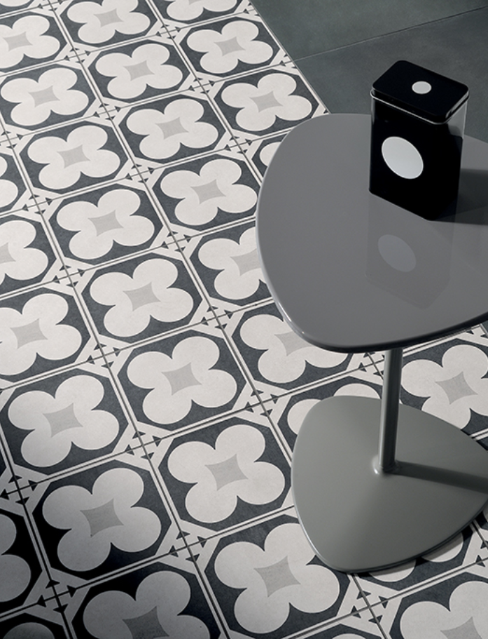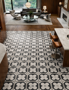 Cementine 4 channels the intricate geometry of classic encaustic look tiles - bold black and white patterns that command attention and inject instant character into any space. The matte porcelain finish delivers authentic period charm without the maintenance headaches of traditional cement tiles, whilst the graphic contrast creates dynamic movement across floors and walls.