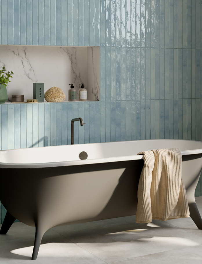 Rainbow is playful yet nostalgic, a tile that brings warmth, movement and personality to a space. Its elongated subway shape feels familiar, but the glossy finish and subtle variation give it a fresh, design-led edge. There’s an artisanal softness to it, like something discovered in a tucked-away European laneway. It creates walls that feel layered, textural and alive.