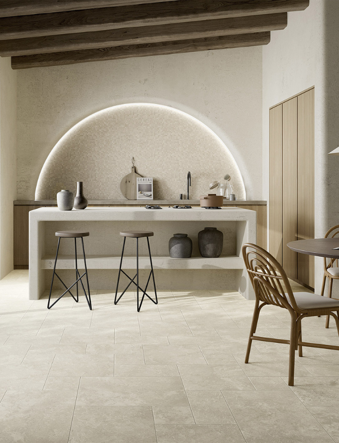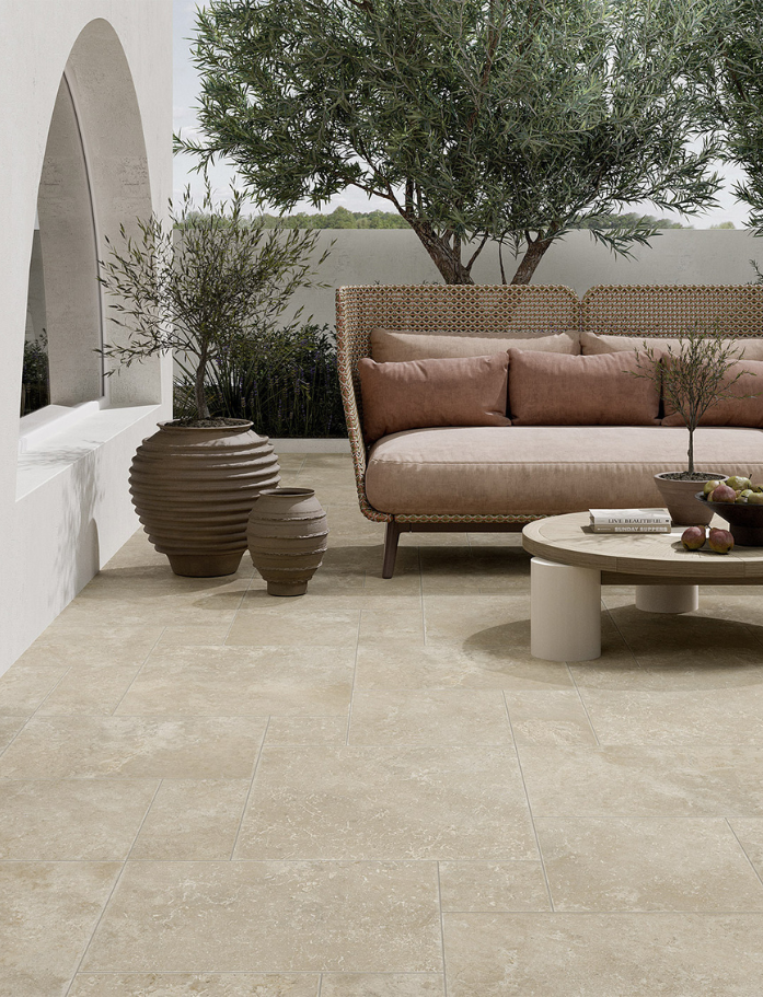 The French Collection captures the relaxed elegance of traditional European stone courtyards, where time-worn surfaces and warm natural tones set the atmosphere. Inspired by classic limestone, this tile brings a sense of softness and light to a space, creating environments that feel welcoming, grounded and effortlessly refined. Its gentle movement and sun-washed palette evoke the charm of old village streets and provincial homes.