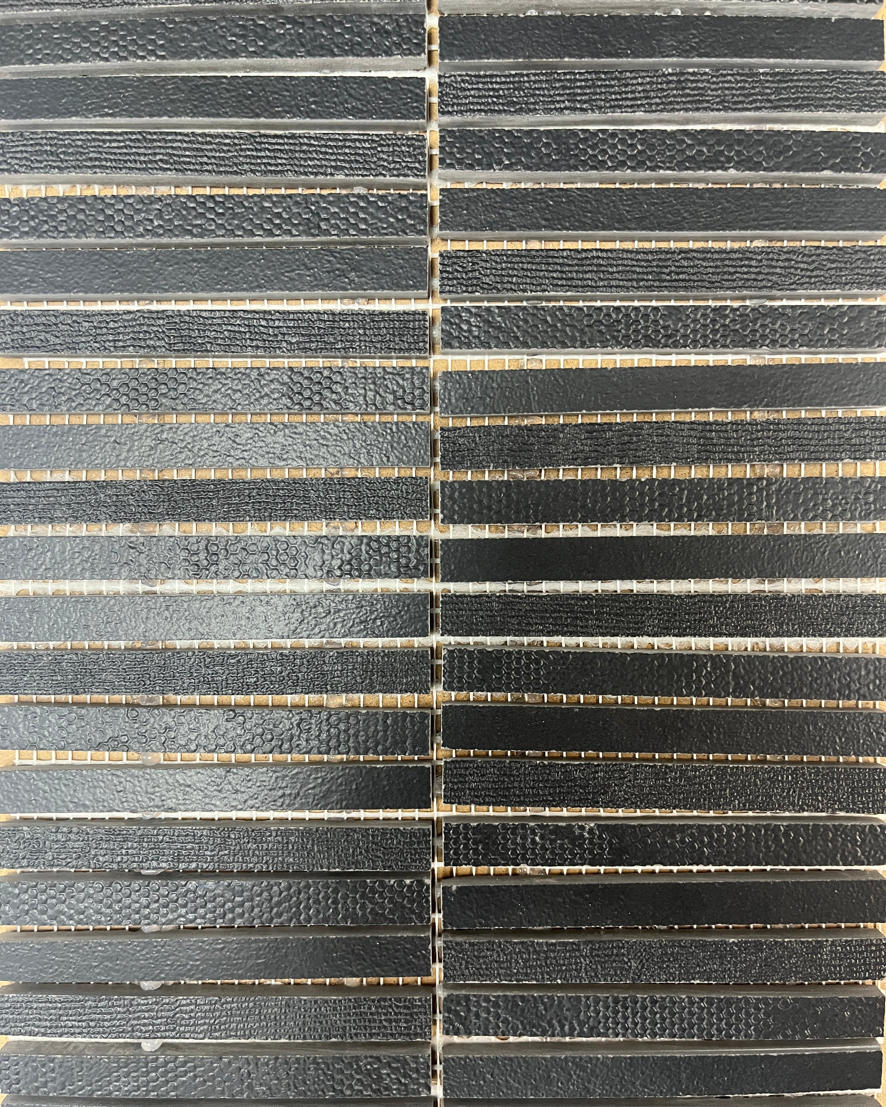 Sticks Tiles - Imperfect kitkat mosaic with textured matte finish and non-rectified edges for artisan character. Porcelain tiles sold in sheets, available in 2 colours. Adds texture, depth and ambience to any space. Available at our InStyle Ceramics Store in Myaree, Perth. Perfect for organic feature walls, textured accents & artisan mosaic design.