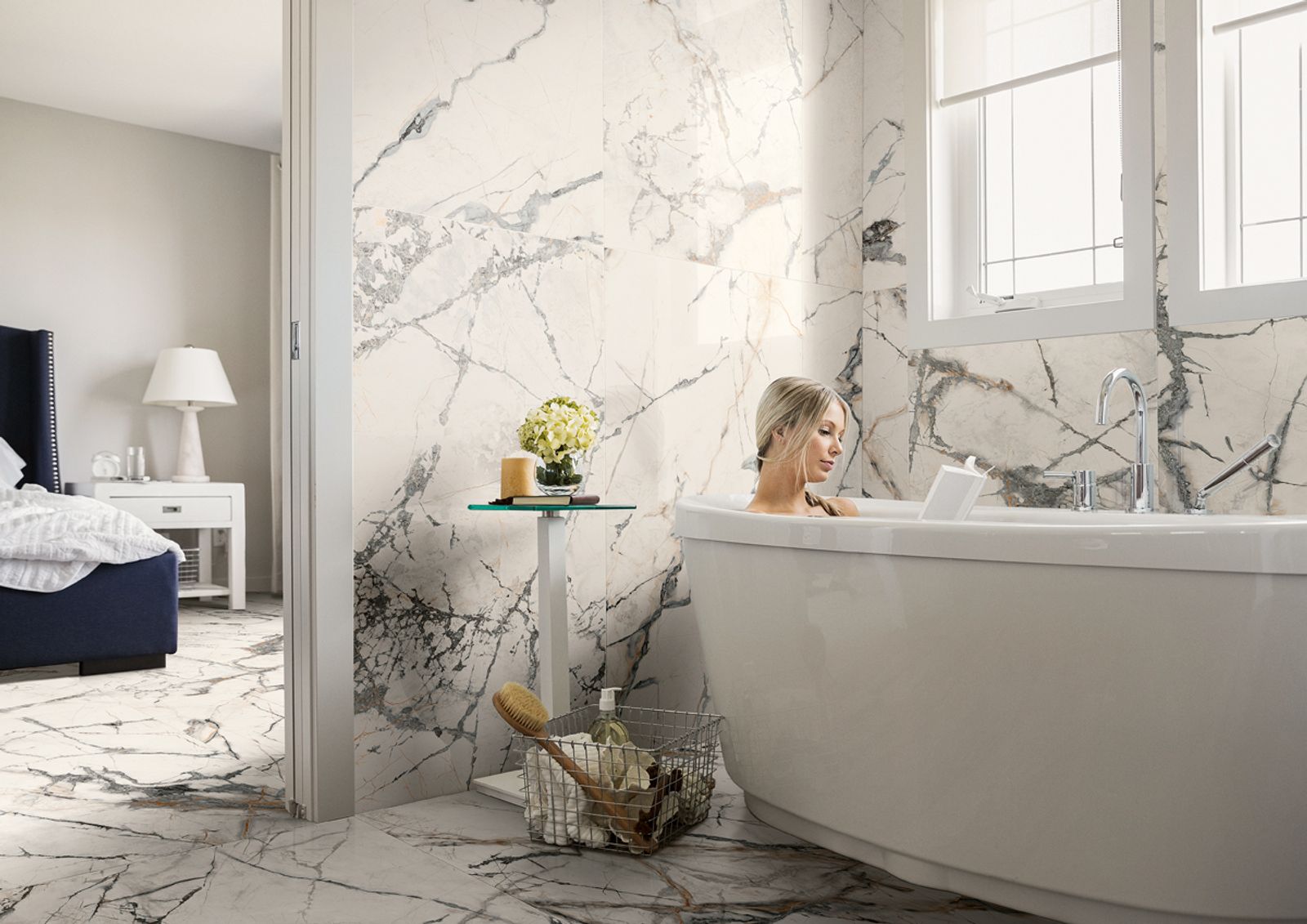Camera Tiles - Made in Italy, Camera is a premium marble look porcelain tile with face variations for authentic character. Large formats (600x1200mm & 1200x2600mm) with rectified edges for seamless installation. Available in matte and gloss finishes. Available at our InStyle Ceramics Store in Myaree, Perth. Perfect for luxury interiors, seamless marble floors & high-end Italian design.