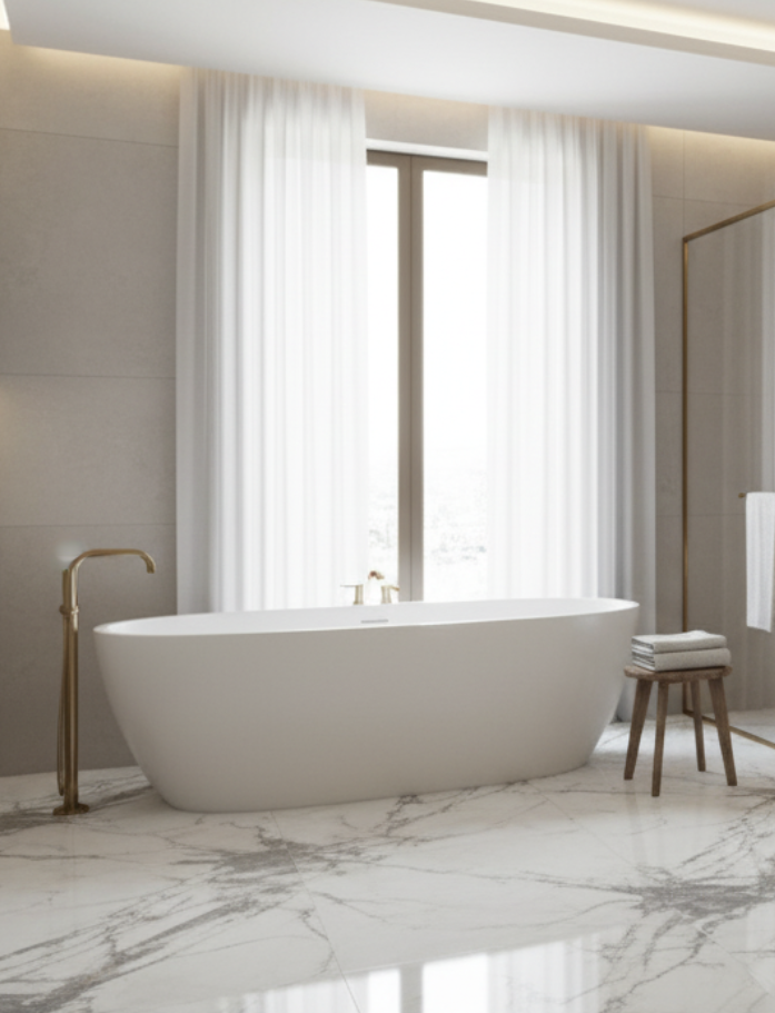 Sensi UP Invisible Pearl - Luxe marble look porcelain tile in large formats (600x1200mm & 1200x1200mm) with both gloss and matte finishes. High-end sophistication for premium interiors. Available at our InStyle Ceramics Store in Myaree, Perth. Perfect for luxury feature walls, elegant floors & statement marble design.