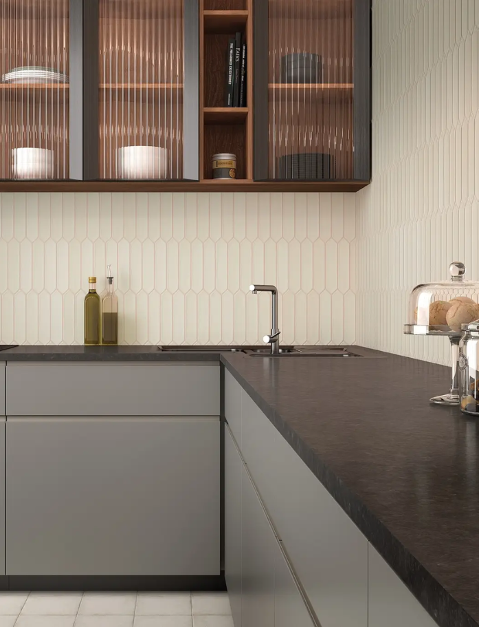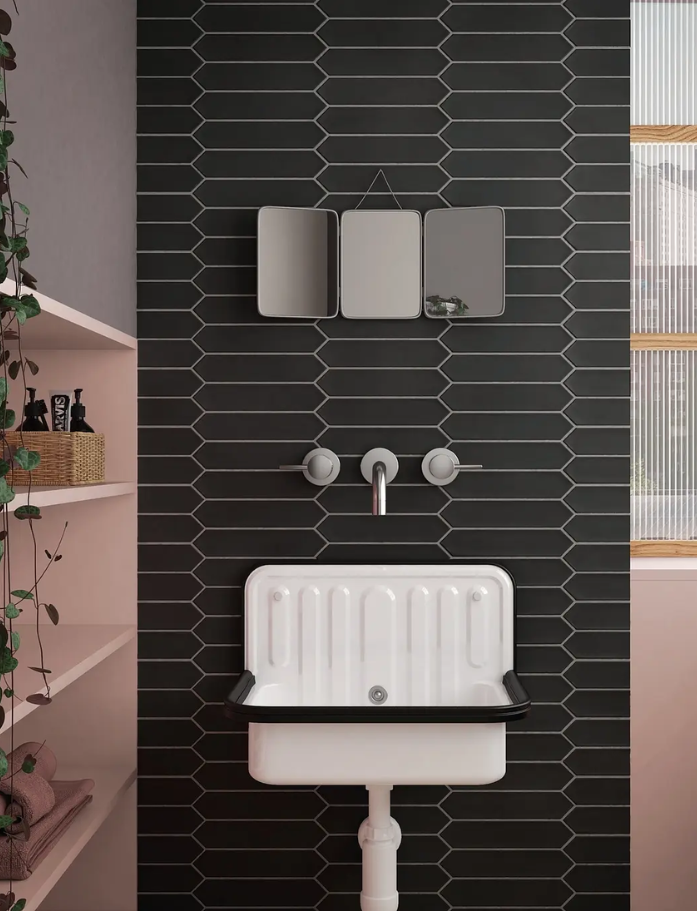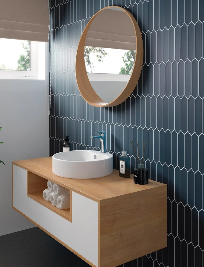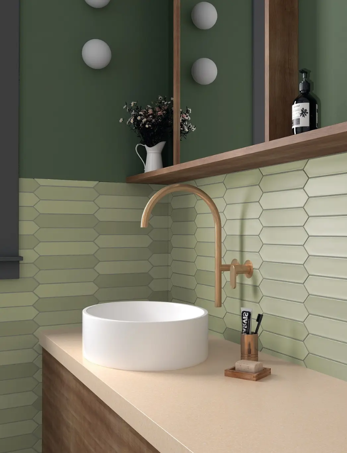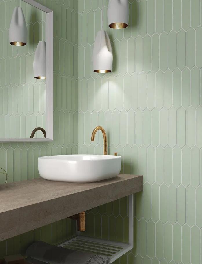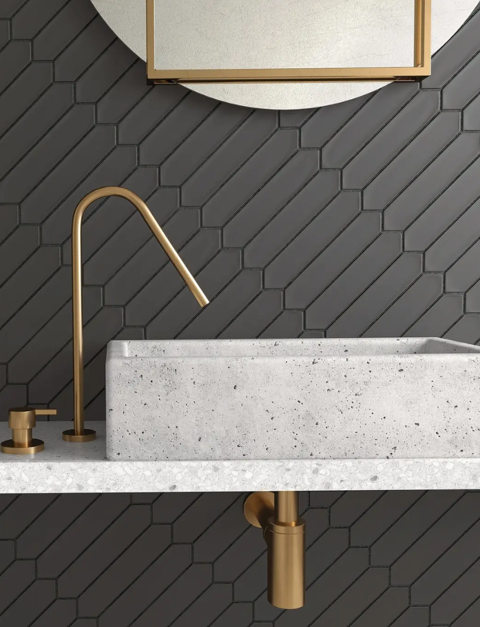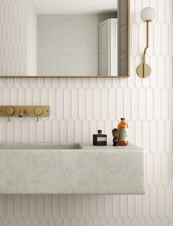 Lan Tiles - Made in Spain, Lan is a glazed ceramic subway tile with pointed ends creating beautiful natural movement and flow. Wall application only. Available in 7 beautiful colours. Available at our InStyle Ceramics Store in Myaree, Perth. Perfect for dynamic feature walls, flowing splashbacks & distinctive subway design.