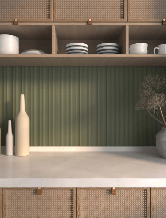 Two coordinating formats work in beautiful harmony: classic subway tiles for clean, timeless walls, and sculptural concave flutes that add gentle dimension and play with light. Use them together to create layered depth, or let each shine alone, either way, Milano brings understated European luxury and tactile softness to contemporary interiors. Whisper-quiet elegance that never tries too hard.