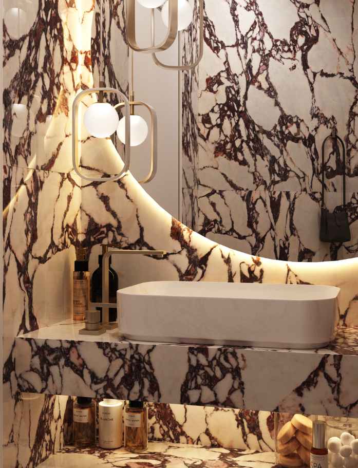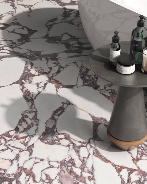 Opal Viola Tiles - 1200x600mm bold marble look tiles with burgundy veining in matt & glossy finishes. Create dramatic accent walls & luxury interiors. Available at our InStyle Ceramics Store in Myaree, Perth. Perfect for statement bathrooms & feature spaces.