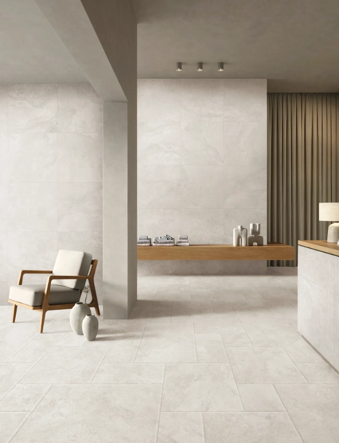 The natural matte finish and subtle linear patterns create quiet, flowing surfaces, perfect for homes that prioritise serenity over stimulation. With P4 slip resistance and three versatile formats up to 600x1200mm, Calvero works seamlessly across walls and floors, indoors and out. Rectified edges ensure crisp, clean installations that enhance the sense of spaciousness and light.