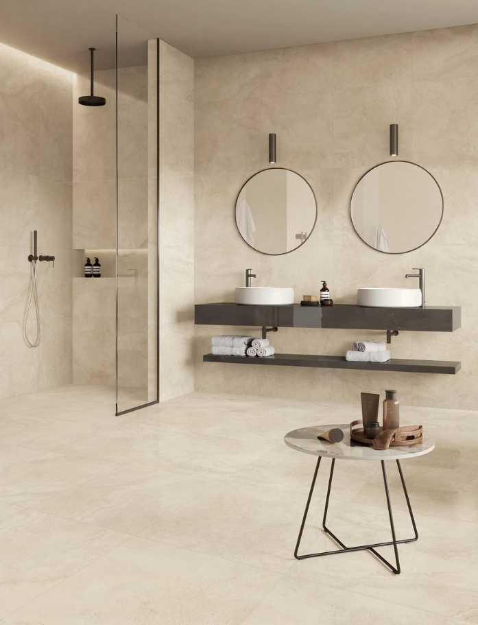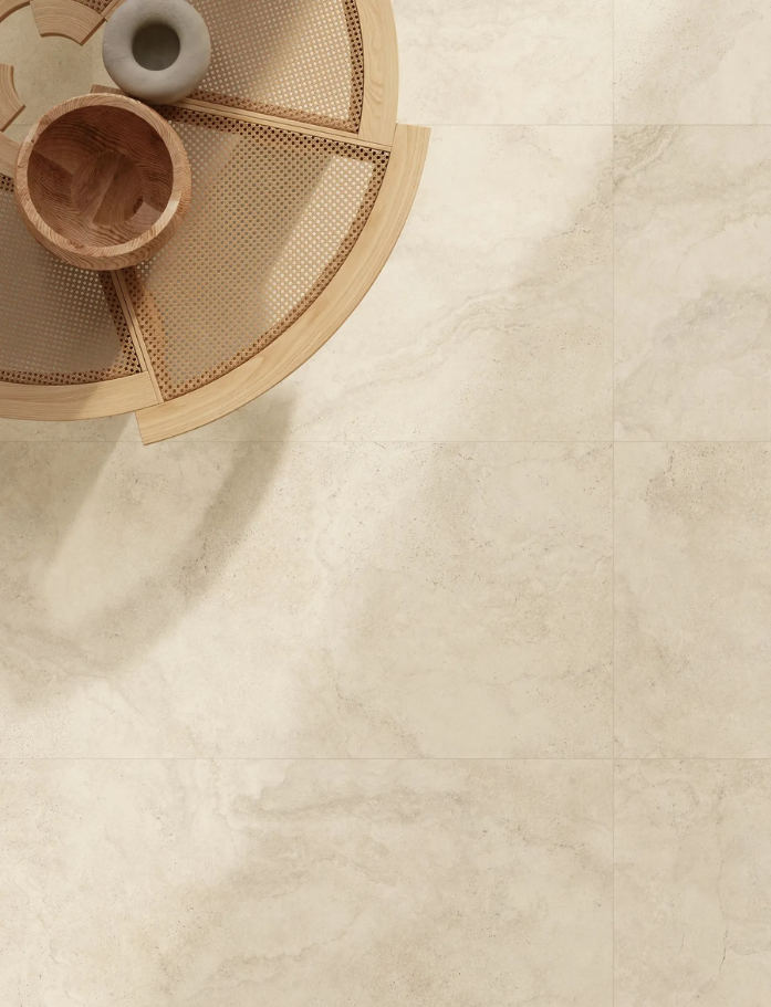 Calm, captured in stone. Calvero breathes tranquillity into spaces through soft cross-cut veining and gentle cream and white tones that ground rather than demand attention.
