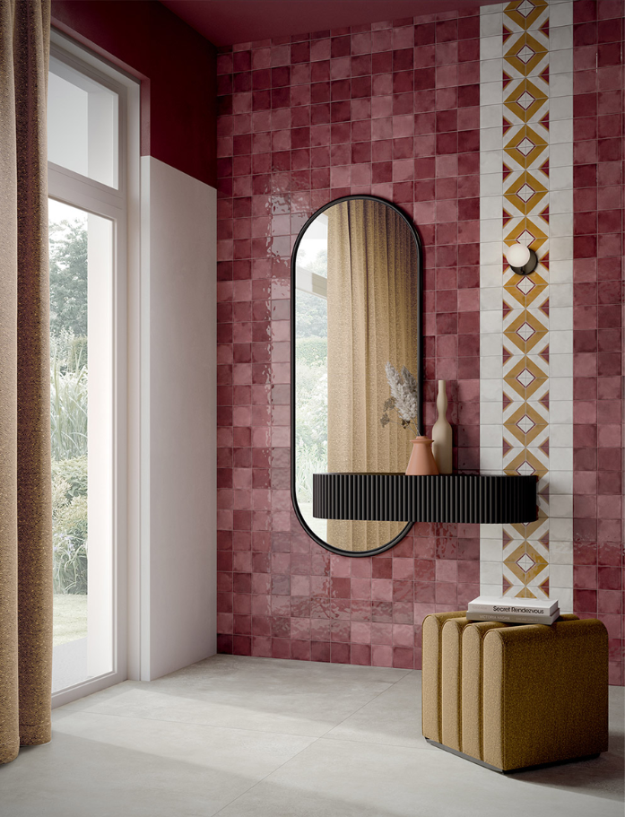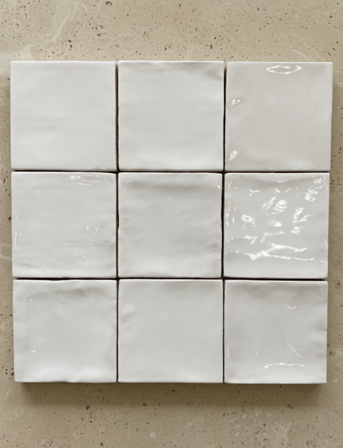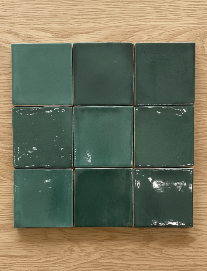 Small Tiles - Handmade Italian ceramic 100x100mm squares with glossy finish and non-rectified edges in 6 beautiful colours. Artisan crafted for interior wall features. Available at our InStyle Ceramics Store in Myaree, Perth. Perfect for kitchen splashbacks, bathroom accents & hospitality feature walls.
