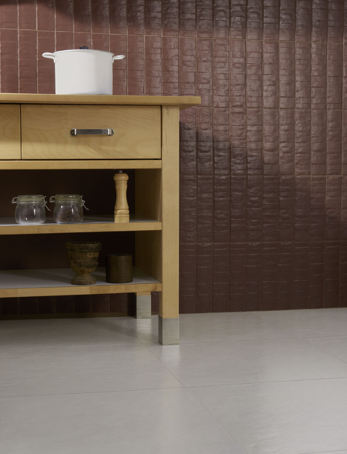 Matter Stick Range - Glazed porcelain, structured subway wall tile in 300x75mm with naturale finish mimicking stick tiles in convenient subway format. Available in Eggplant, Orange, Plaster, Leather and White. Wall application only. Available at our InStyle Ceramics Store in Myaree, Perth. Perfect for textured feature walls, contemporary splashbacks & structured linear design.