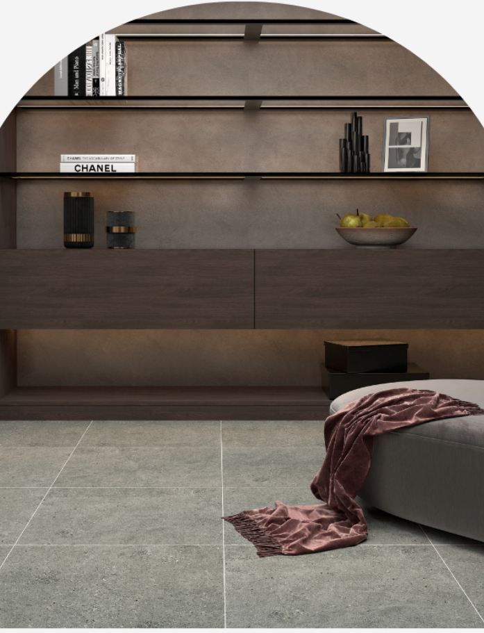 Myers Collection - Stone look porcelain tile with matte finish and clean rectified edges. Crystal matt finish creates a shimmering effect replicating real stone with anti-slip function. Versatile design suits industrial, minimalist or natural styling. Available at our InStyle Ceramics Store in Myaree, Perth. Perfect for versatile interiors, safe flooring & authentic stone aesthetics.