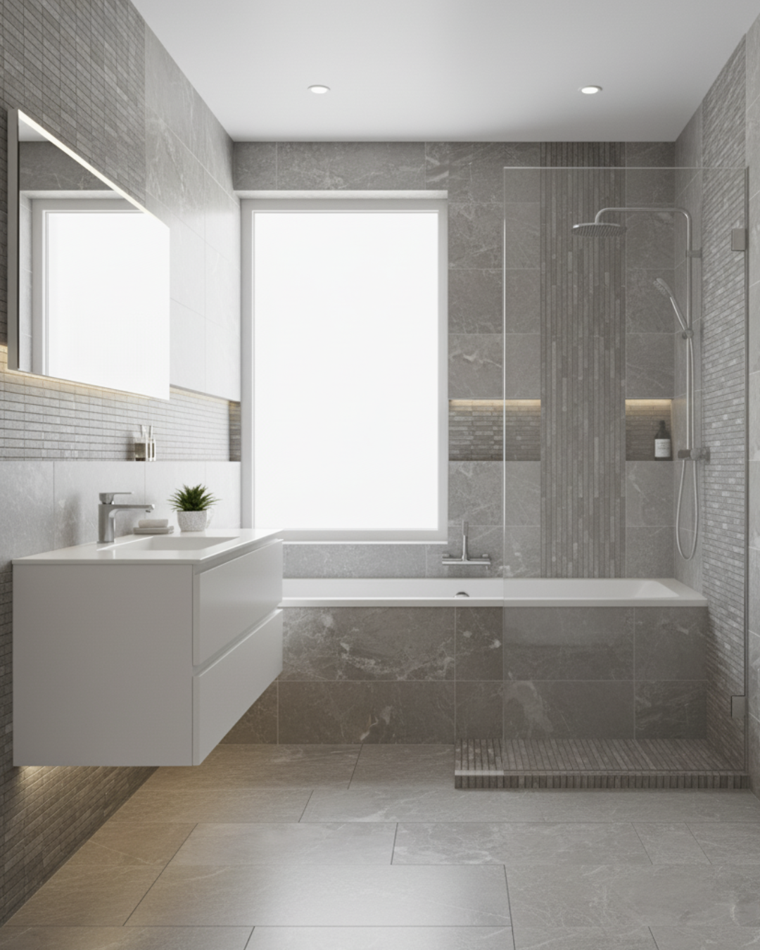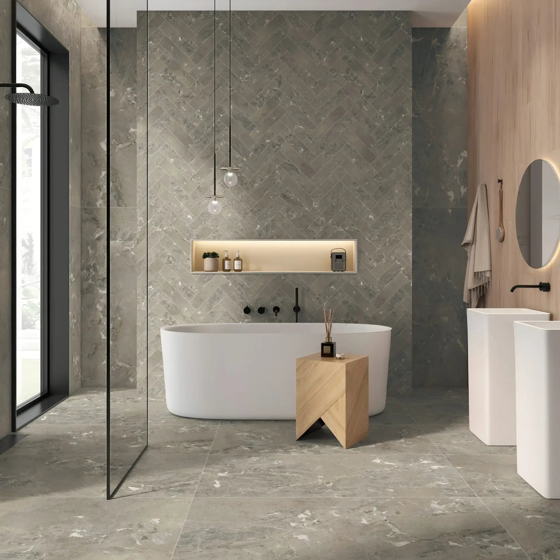 Parco Tile Collection - Textured porcelain tiles in 3 warm neutral colours and 4 versatile sizes for easy mix & match designs. Elegant finish for walls & floors creates uniform yet dynamic looks. Available at our InStyle Ceramics Store in Myaree, Perth. Perfect for contemporary interiors & timeless style.
