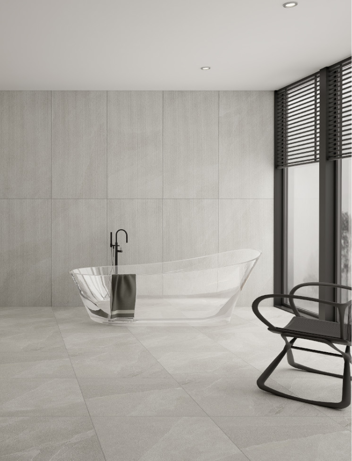 Solara Tiles - Stone look rectified porcelain tile in 4 classic shades and 3 versatile sizes. Quality builders range for practical interiors. Available at our InStyle Ceramics Store in Myaree, Perth. Perfect for cost-effective renovations, neutral stone design & accessible quality.