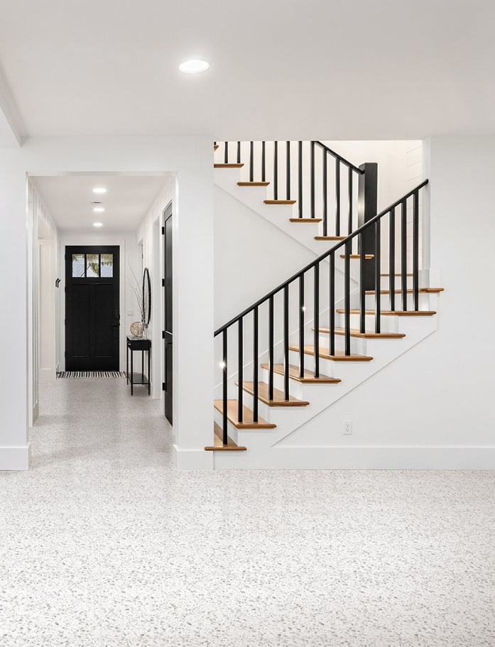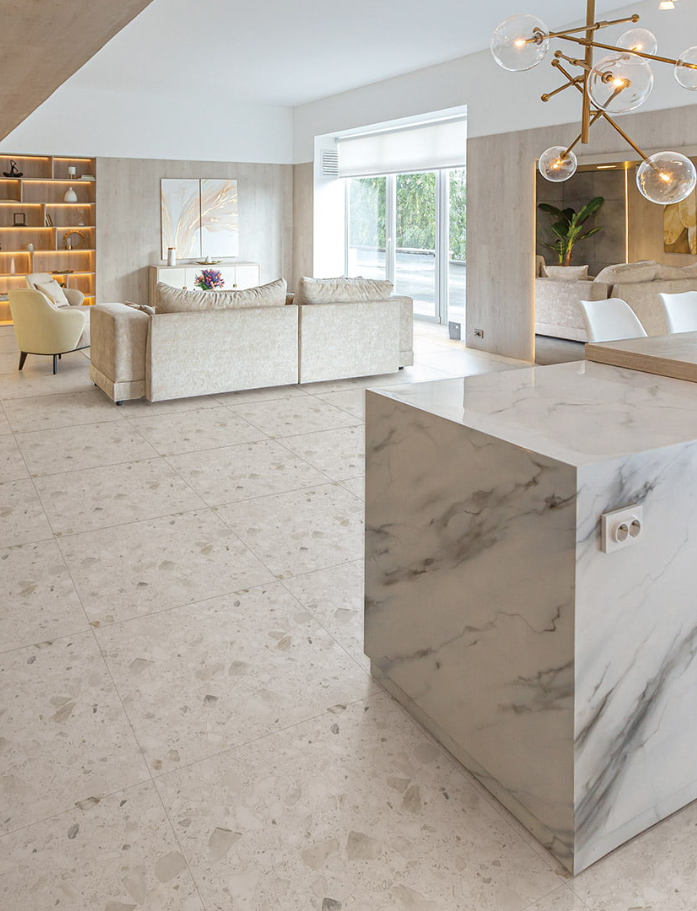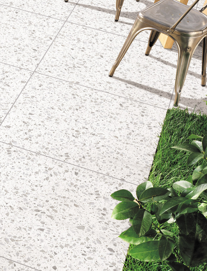 Terrazzo reimagined for contemporary flow. Terra Stone captures the timeless charm of classic terrazzo in refined porcelain, with rectified edges that minimise grout lines for that coveted seamless, continuous look.